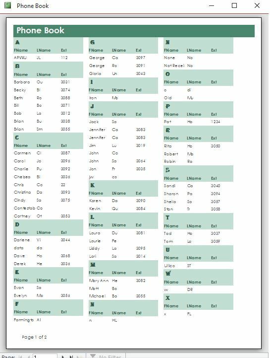 A form which can be imported into your application to easily find a phone number. The application also includes a report.